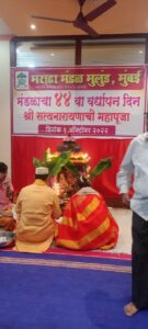 October 31, 2022 Posted by: Maratha Mandal Mulund Category: No Comments मराठा मंडळाचा ४४ वा वर्धापन दिन अतिशय उत्साहात पार पडला. सत्यनारायण महापूजा आणि सांस्कृतिक कार्यक्रम अंतर्गत २१७ पद्मिनी धाम हिची एकांकिका सादर केली गेली.